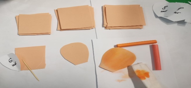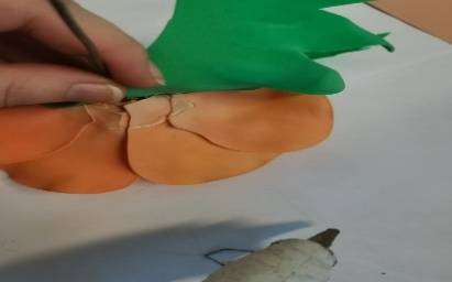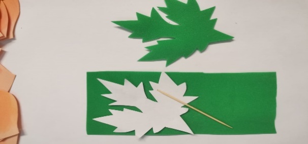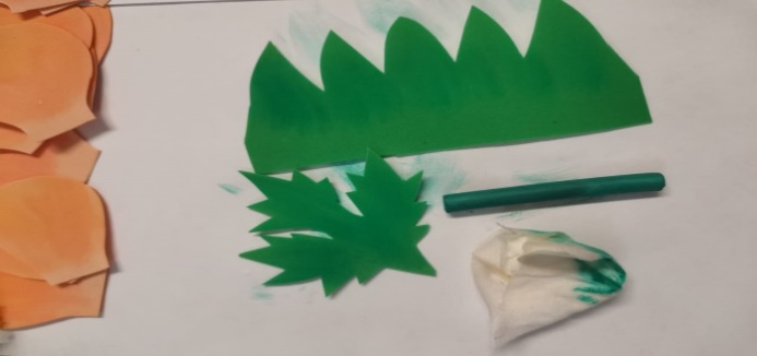 | 8.Обводим по шаблонам детали листьев и чашелистика, используя зубочистки. Вырезаем детали и тонируем. |