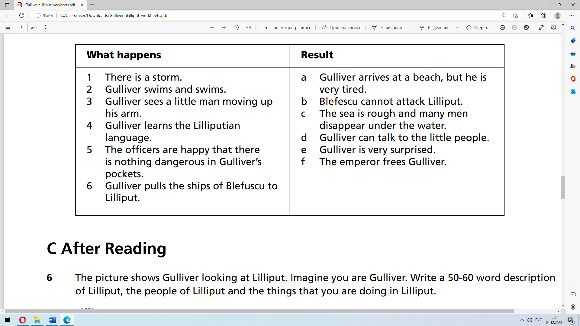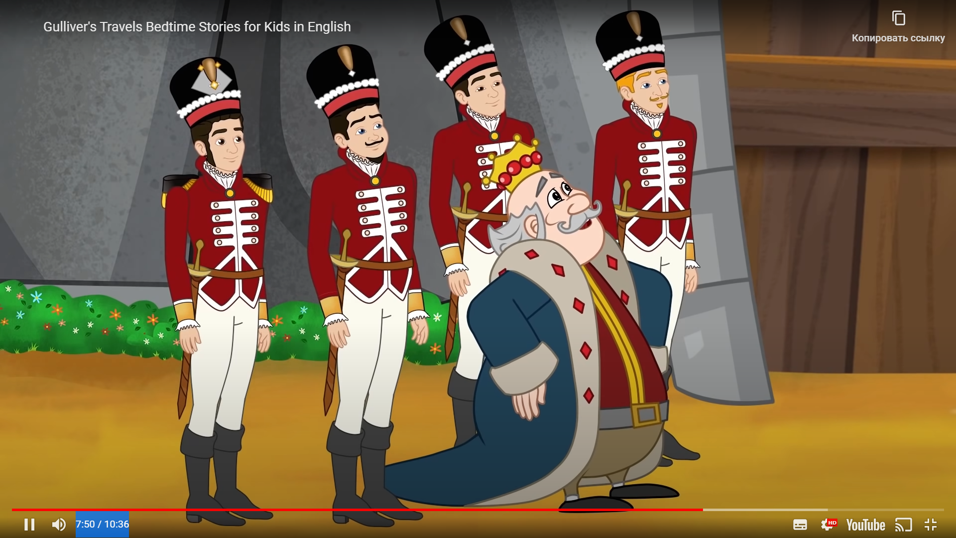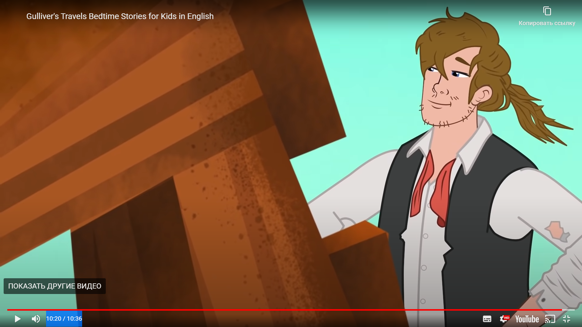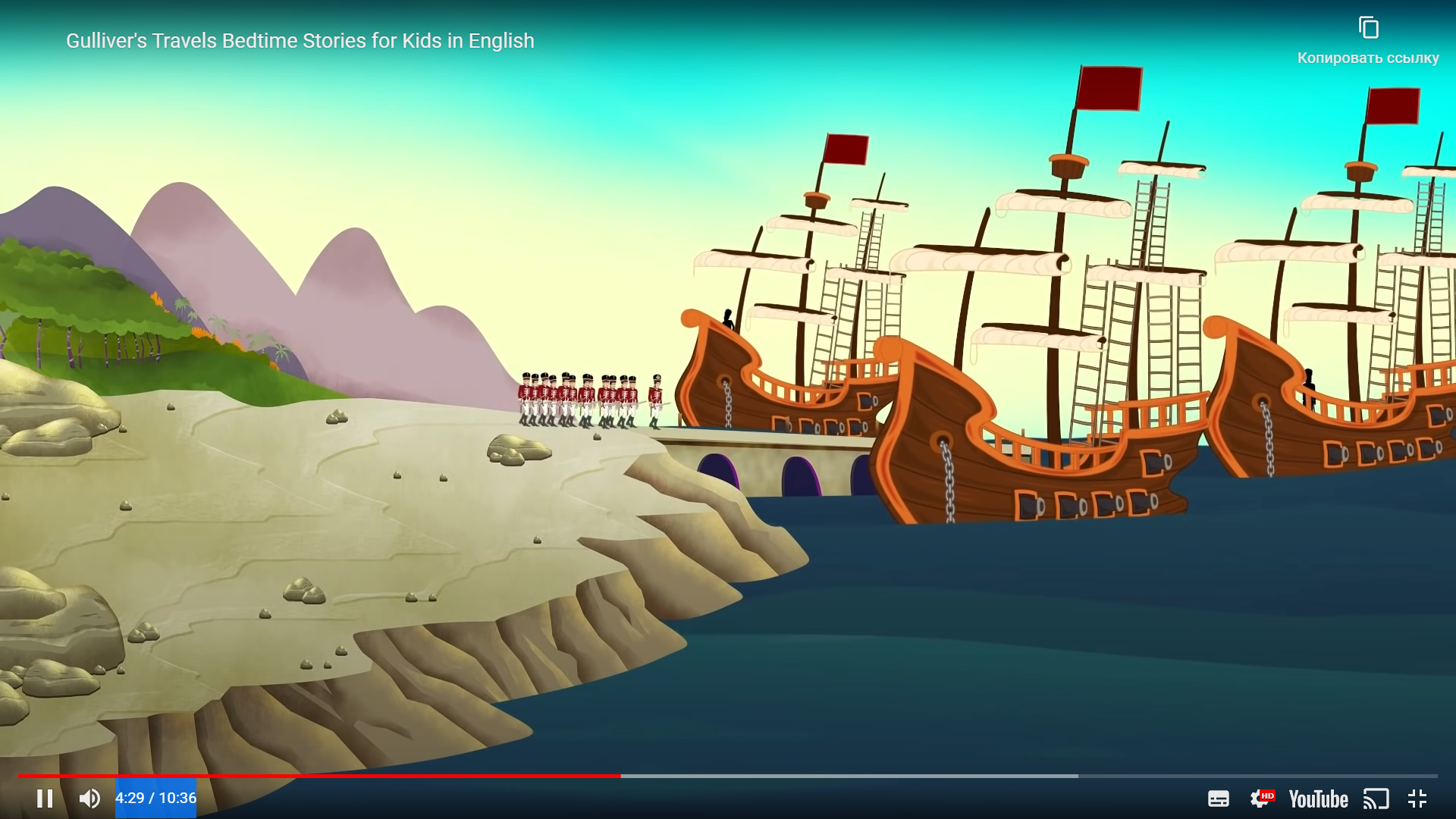 Gulliver pulls Blefuscu’s ships to Lilliput. ( )