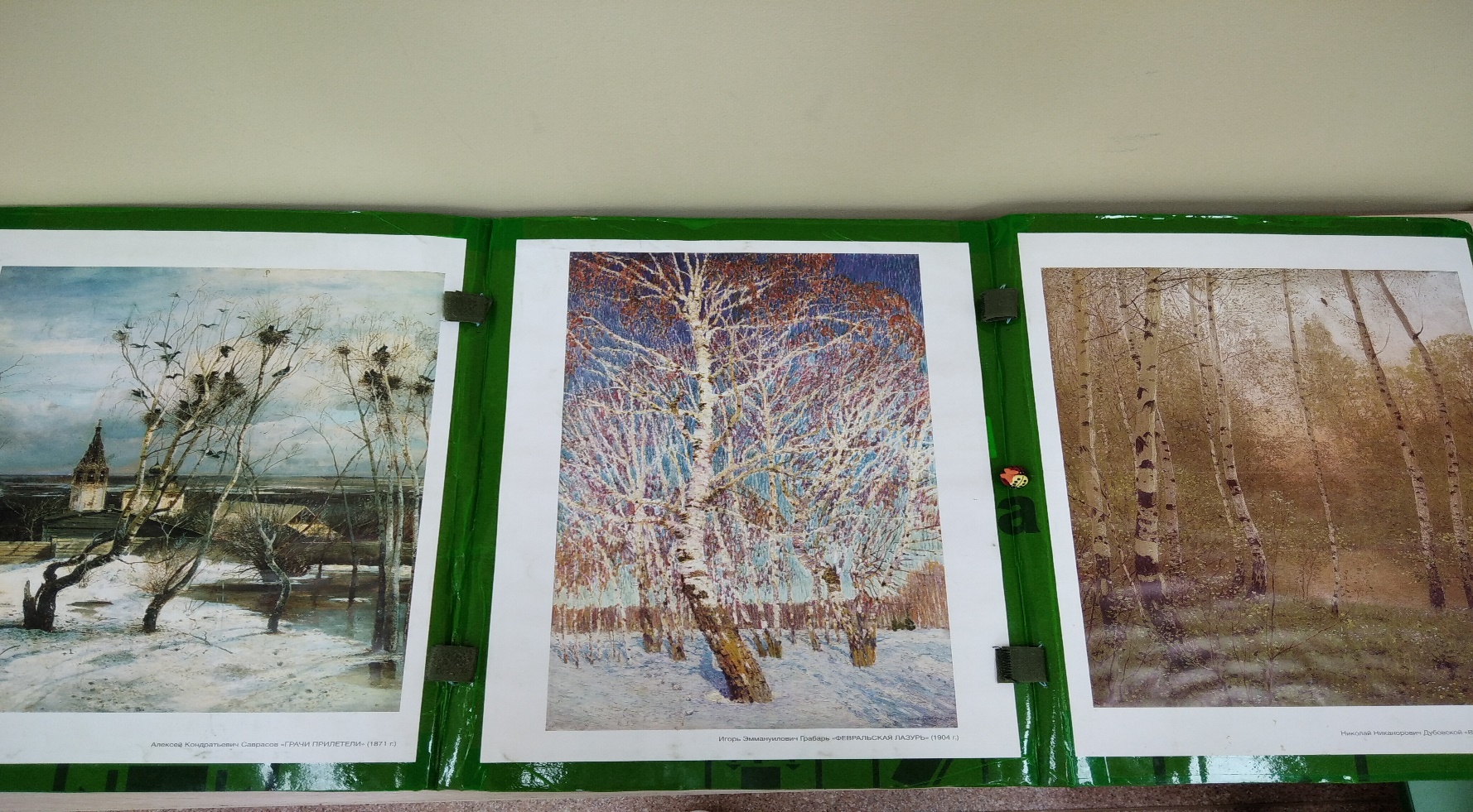 Цель: обратить внимание детей на меняющуюся (в соответствии со сменой времени года) красоту окружающей природы с акцентом на хрупкость и важность каждого элемента живой и неживой природы, связей между ними; развитие мелкой моторики, закрепление аккуратного отношения к интерактивным картинам с природой с проецированием аккуратного отношения к реальному окружающему миру; закрепление знаний о временах года и о природных явлениях; обратить внимание детей на картины русских художников, вдохновленных красотой природы, на цвет и формы элементов живой и неживой природы, отображенных на картинах, прививать чувство восхищения и бережного отношения к природе.