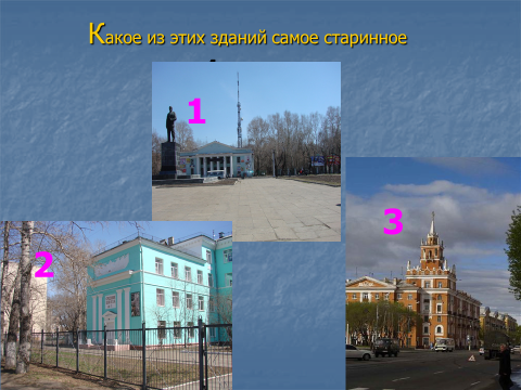 16 | Эрудит лото. Какое из этих зданий самое старинное? (надо выбрать из трех предложенных фотографий зданий) | Дом культуры «Строитель», Гимназия № 1, Дом со шпилем | Дом культуры «Строитель» |