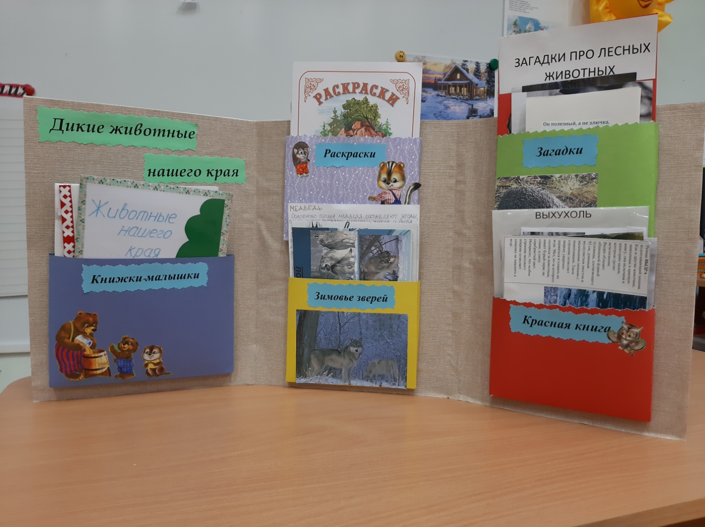 Методическое пособие лэпбук «Дикие животные нашего края» представляет собой папку – раскладушку формата А4, состоящую из трех частей, в которых расположены дидактические игры. В собранном состоянии занимает мало места и находится в свободном для детей доступе.