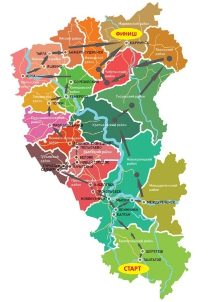 Настольная игра – ходилка выглядит в виде карты Кузбасса. На игровом поле отмечены все города Кузбасса с определенным цветом, игрок который поподает на это поле берет карточку данного цвета, где знакомится с достопримечательностью этого города.