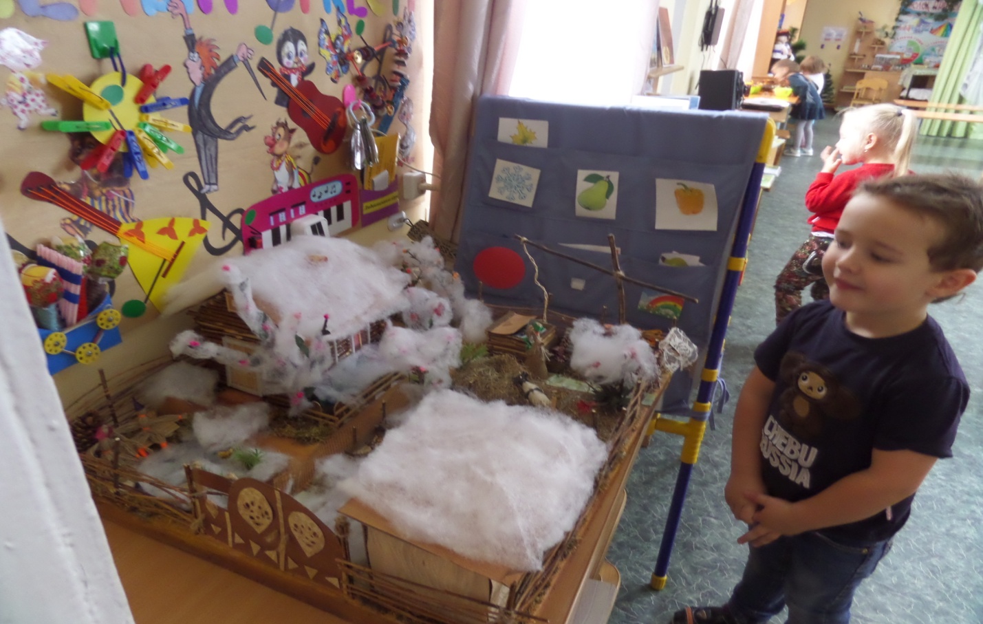 Недавно мы с ребятами решили построить свой казачий дом, но потихонечку этот дом превратился в большой макет «Казачий двор». Он предназначен для образовательной и игровой деятельности детей старшего дошкольного возраста, а также для украшения интерьера.Макетспособствует возникновению и развитию эмоционально – познавательного интереса к историческому и культурному наследию России, помогаетзакреплятьзнания об особенностях крестьянского труда,расширяет представление о жизни кубанских казаков. Макет на данный момент видоизменяется, дополняется. В данный момент дети, так как наступила зима- ребята решила прикрыть его снегом, который «обнаружили» в «Паровозике», нашли там синтепон и решили его использовать в качестве снега.