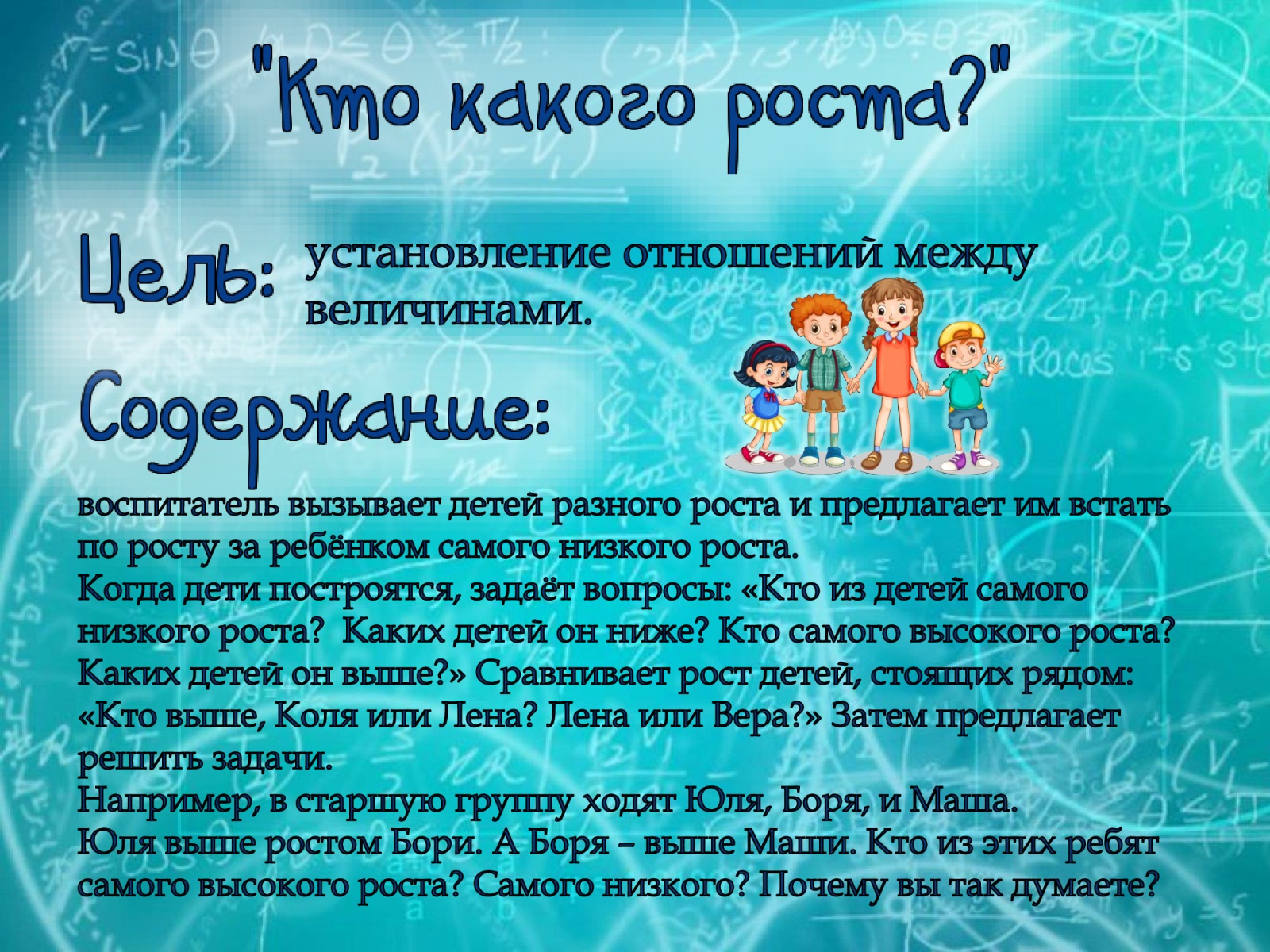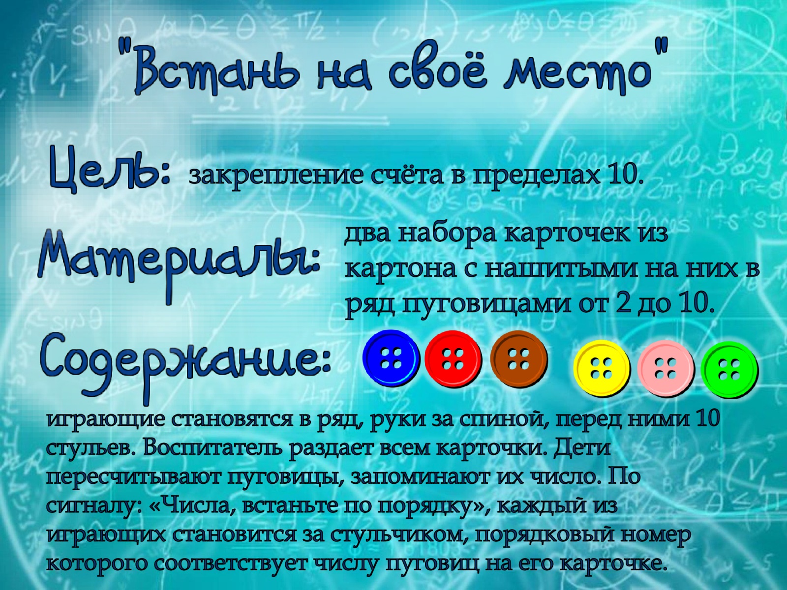 30.09.2024 "Картотека подвижных игр с математическим содержанием" Принять участие в этом конкурсе Описание конкурса Список всех конкурсов Купцова Дарья Сергеевна МАДОУ "Радость" №184 города Нижний Тагил Конкурсная работа Свидетельство участника экспертного совета жюри Свидетельство можно заказать сразу, как Вы оставите не менее 3 объективных комментариев в этом разделе сайта. Узнать подробнее Дидактическая игра "Домашние животные" Методическая разработка "Использование приемов мнемотехники в развитии связной речи детей старшего дошкольного возраста с ТНР" У вас недостаточно прав для добавления комментариев.Чтобы оставлять комментарии, вам необходимо авторизоваться на сайте. Если у вас еще нет учетной записи на нашем сайте, предлагаем зарегистрироваться. Это займет не более 5 минут.