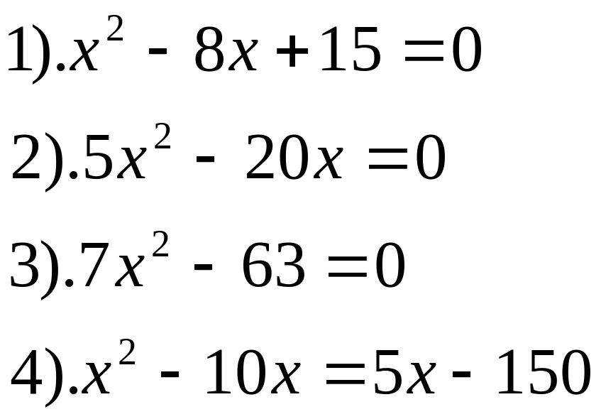 Решить уравнения, заменить буквой наибольший корень каждого уравнения. Составленное слово является ответом.