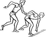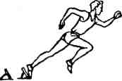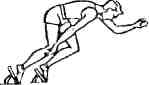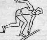| Туловище отклонить назад, ось плеч должна находиться за стартовой линией (в сторону бега).