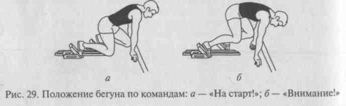 Бегун в положении стартовой готовности не должен быть излишне напряжен и скован. Но в то же время он должен находиться в состоянии сжатой пружины, готовой по команде начать движение, стартовать, тем более что промежуток между командами «Внимание!» и «Марш!» не оговорен правилами соревнований и целиком зависит от стартера, дающего старт.