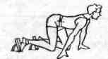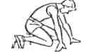 | Туловище наклонить вперед, голову опустить вниз, ось плеч находится над стартовой линией.
