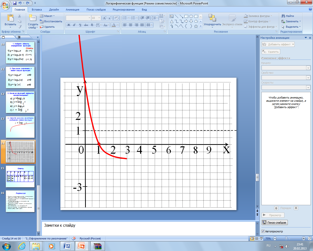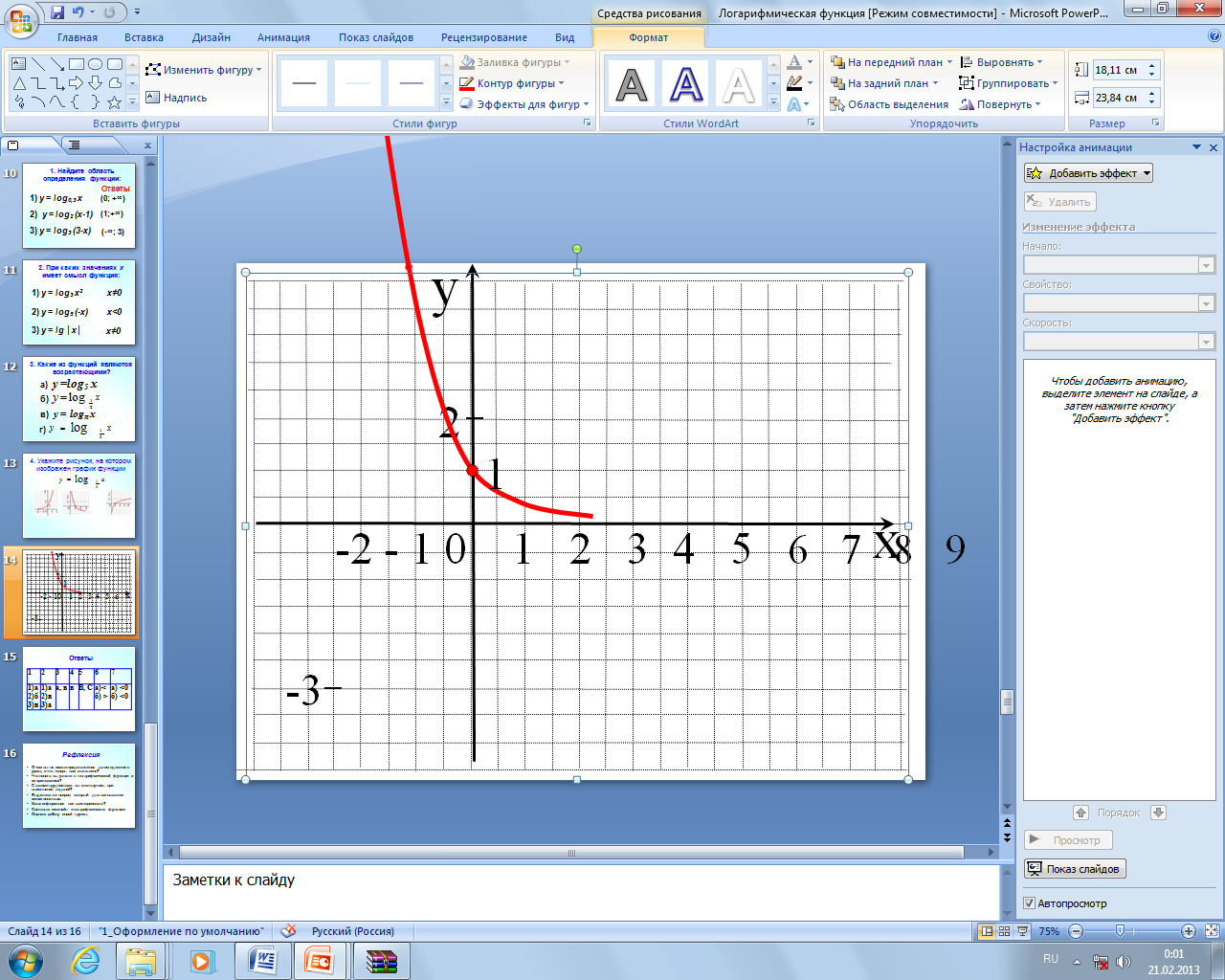 , при этом 0<a<1 (т.е функция убывающая - ↓)