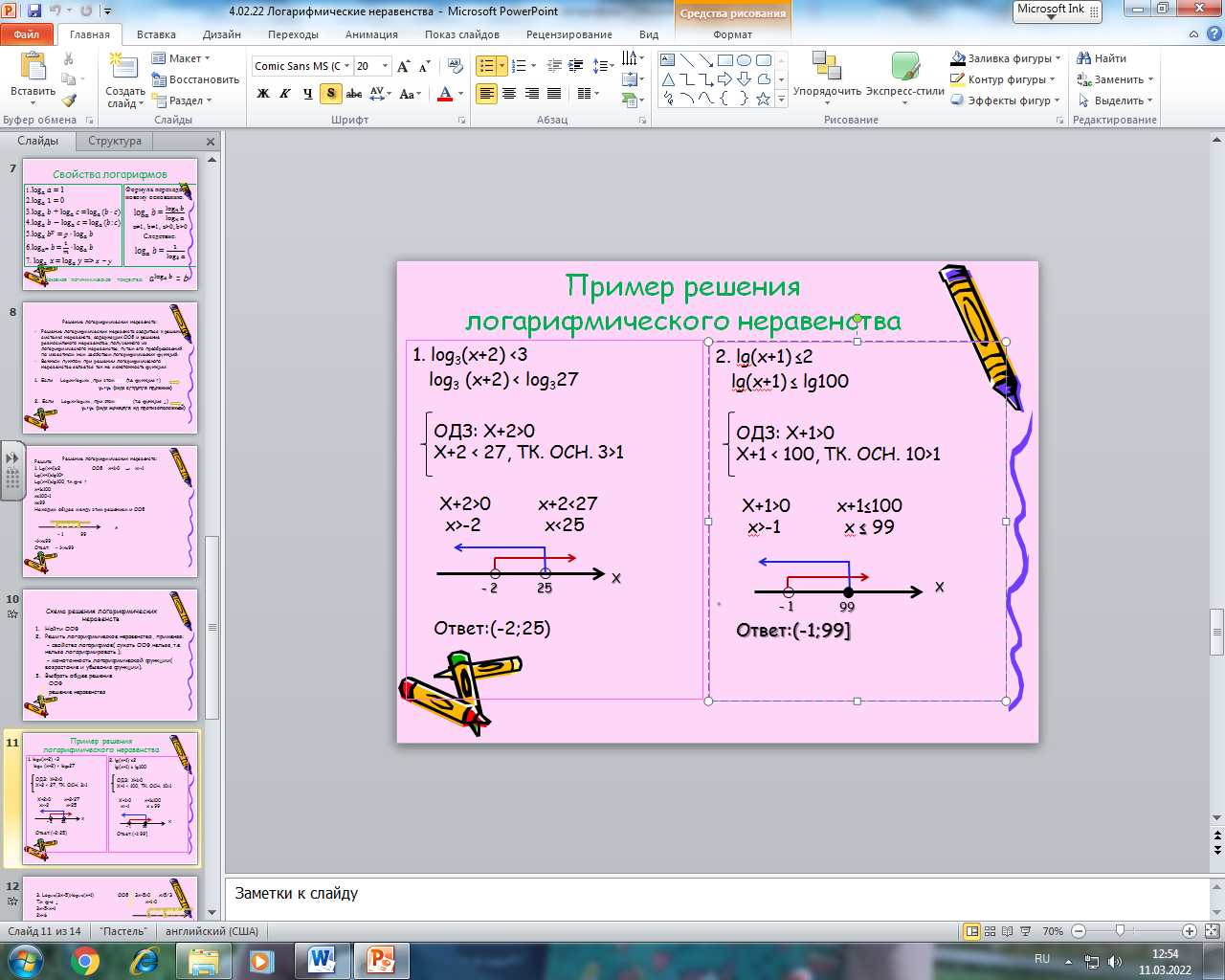 - монотонность логарифмической функции (возрастание и убывание функций);