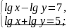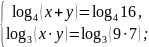 | Перейдем от системы логарифмических уравнений к системе уравнений путем потенцирования обоих уравнений |