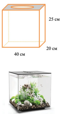 Дедушка Оли и Димы – аквариумистлюбитель. Оле и Диме тоже нравится ухаживать за рыбками, создавать подводные миры в домашних аквариумах, помогать в этом своим друзьям. На день рождения Оле подарили аквариум прямоугольной формы с размерами 40х20х25см.