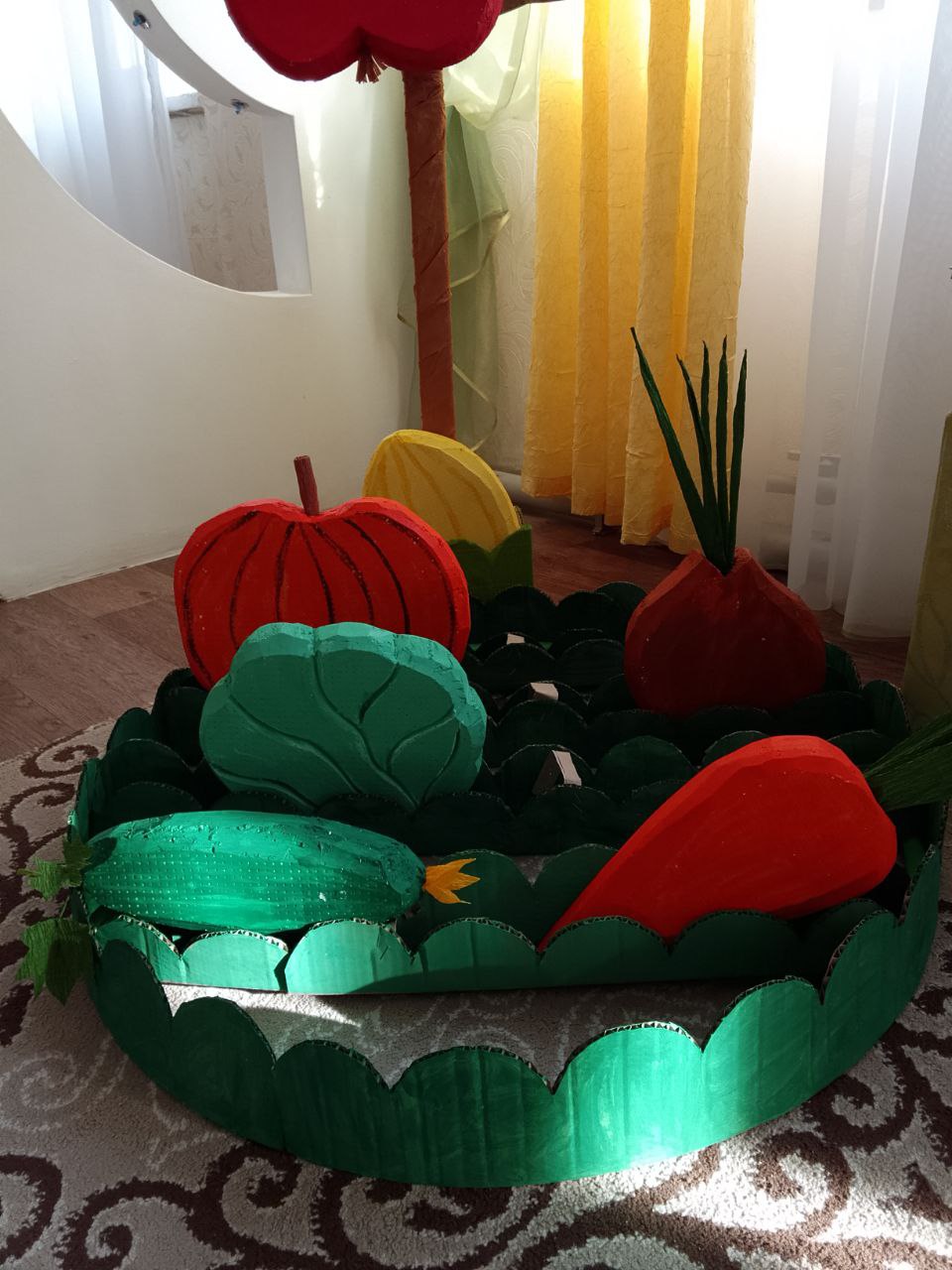 Предложить ребенку разместить на «грядке» овощи определенного цвета.