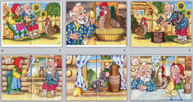 Материал: Разрезные картинки по сказке "Курочка Ряба".