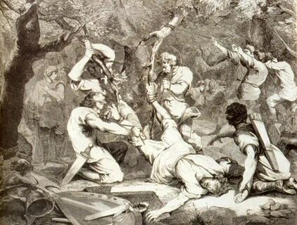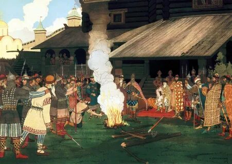 Казнь Игоря «Сказала дружина Игорю: «Отроки Свенельда изоделись оружием и одеждой, а мы наги. Пойдём, князь, с нами за данью, и ты добудешь, и мы». И послушал их Игорь – пошёл к древлянам за данью, и прибавил к прежней дани новую, и творили насилие над ними мужи его. Взяв дань, пошёл он в свой город. Когда же шёл он назад, поразмыслив, сказал своей дружине: «Идите домой, а я возвращусь и пособираю ещё». И отпустил свою дружину домой, а сам с малой дружиной вернулся, желая большего богатства». Дальше сюжет всем известен по школьным учебникам истории, древляне на вече решили: «Если повадится волк к овцам, то вынесет все стадо, пока не убьют его; так и этот: если не убьем его, то всех нас погубит». Древляне организовали засаду и убили князя и его дружинников, «так как было их мало». |