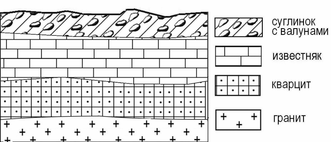 11)Расположите показанные на рисунке слои горных пород в порядке уменьшения их возраста (от самого древнего до самого молодого).