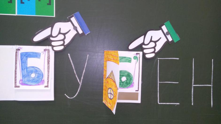 Фото 1. Составляется слово, делается предположение с помощью указателей.