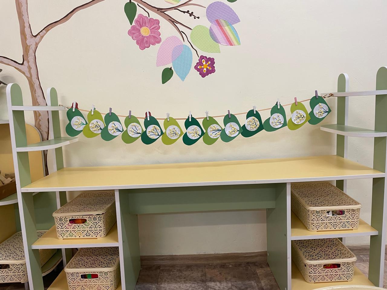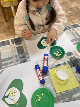 Воспитатель предлагает детям сделать весеннюю открытку с цветочками.