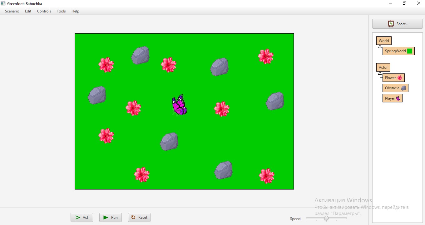 Приветствие: "Здравствуйте, ребята! Сегодня мы создадим весеннюю игру в Greenfoot. Вы будете управлять персонажем, который собирает цветы и избегает препятствий."