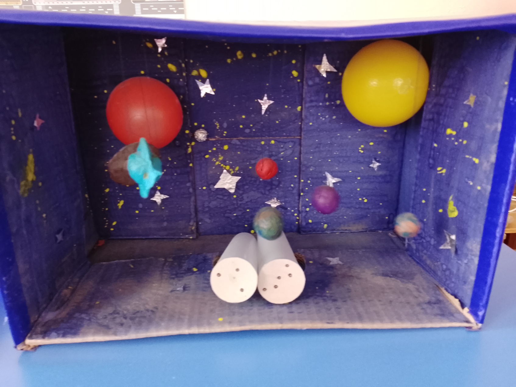 Ход работы: предложить ребёнку рассмотреть на макете расположение планет, рассмотреть с помощью телескопов созвездия. Дети пытаются высказываться, размышлять, строить свои предположения. Воспитатель формирует правильные знания детей о солнечной системе.