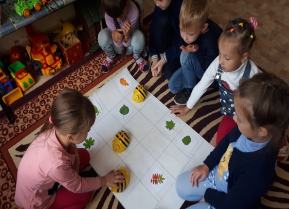 Самый вариативный коврик, это базовый. На нём нет изображений, но он разделён на сектора. Один сектор, это 1 шаг пчёлки. Возможности этого коврика безграничны, он позволяет решать образовательные задачи по любой тематике.