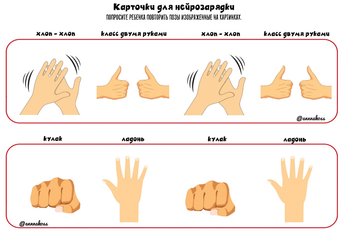 Упражнение «Кулак, ладонь», «кулак, класс», «ладошка, хлопок» и т.д.