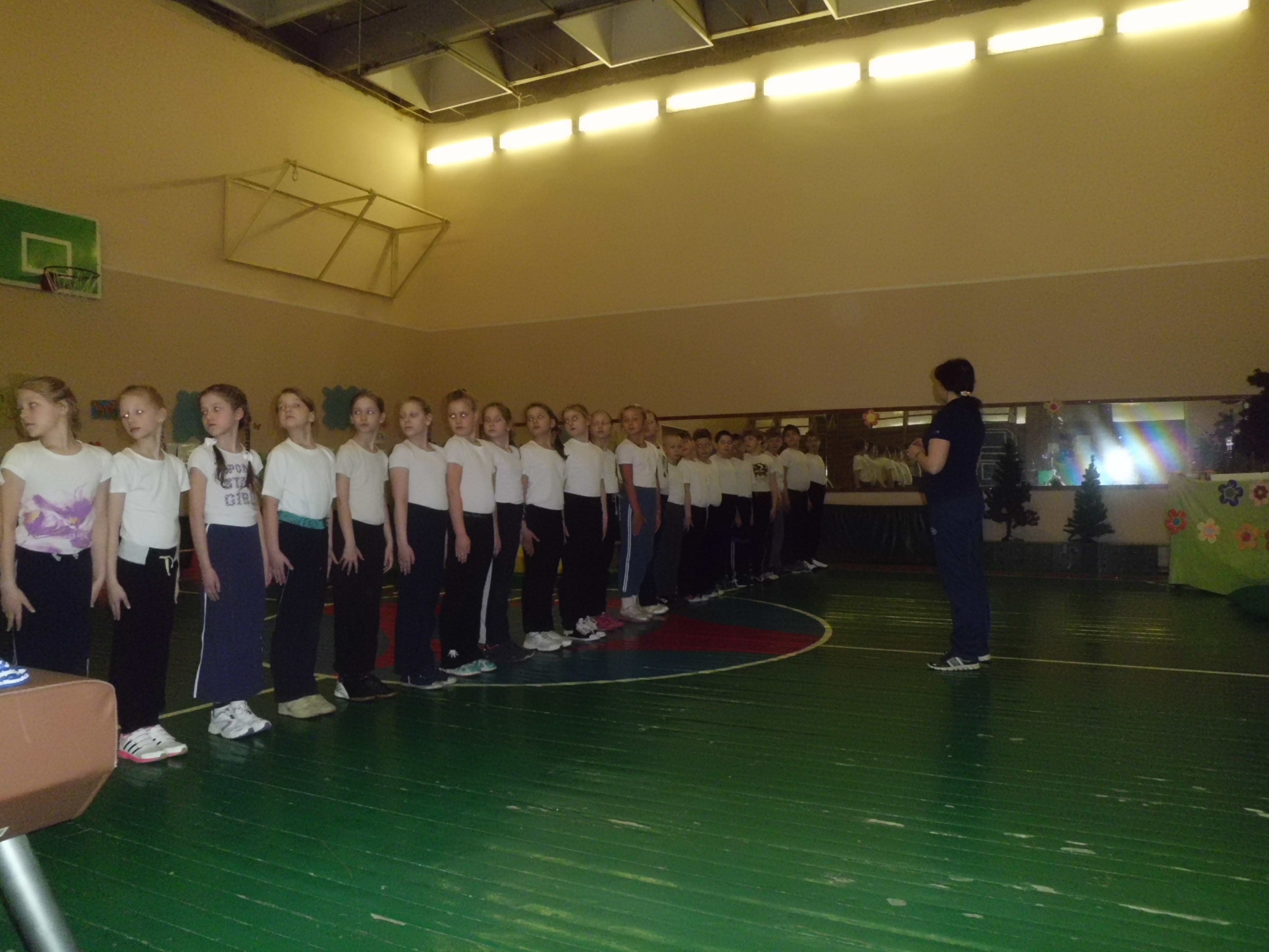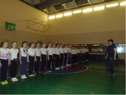 Построение в одну шеренгу. Выход класса из спортивного зала под речёвку.