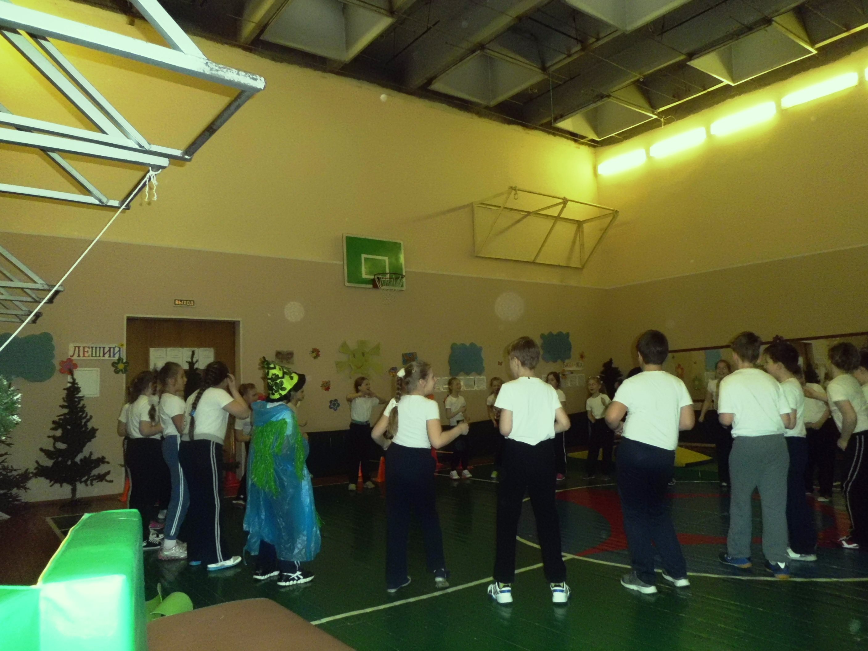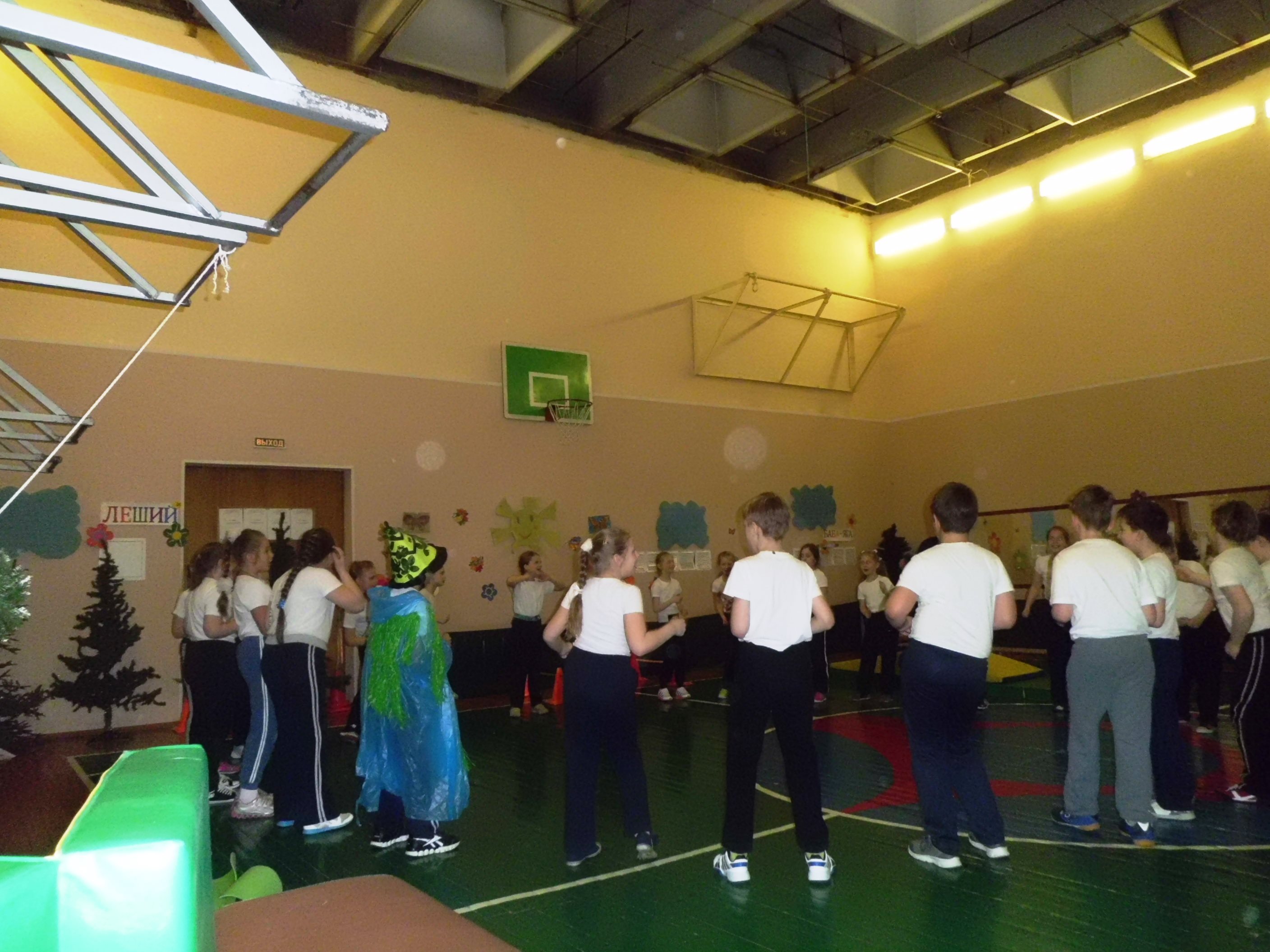 Ученики вмести с лешим танцуют танец «Хула-Хуп».