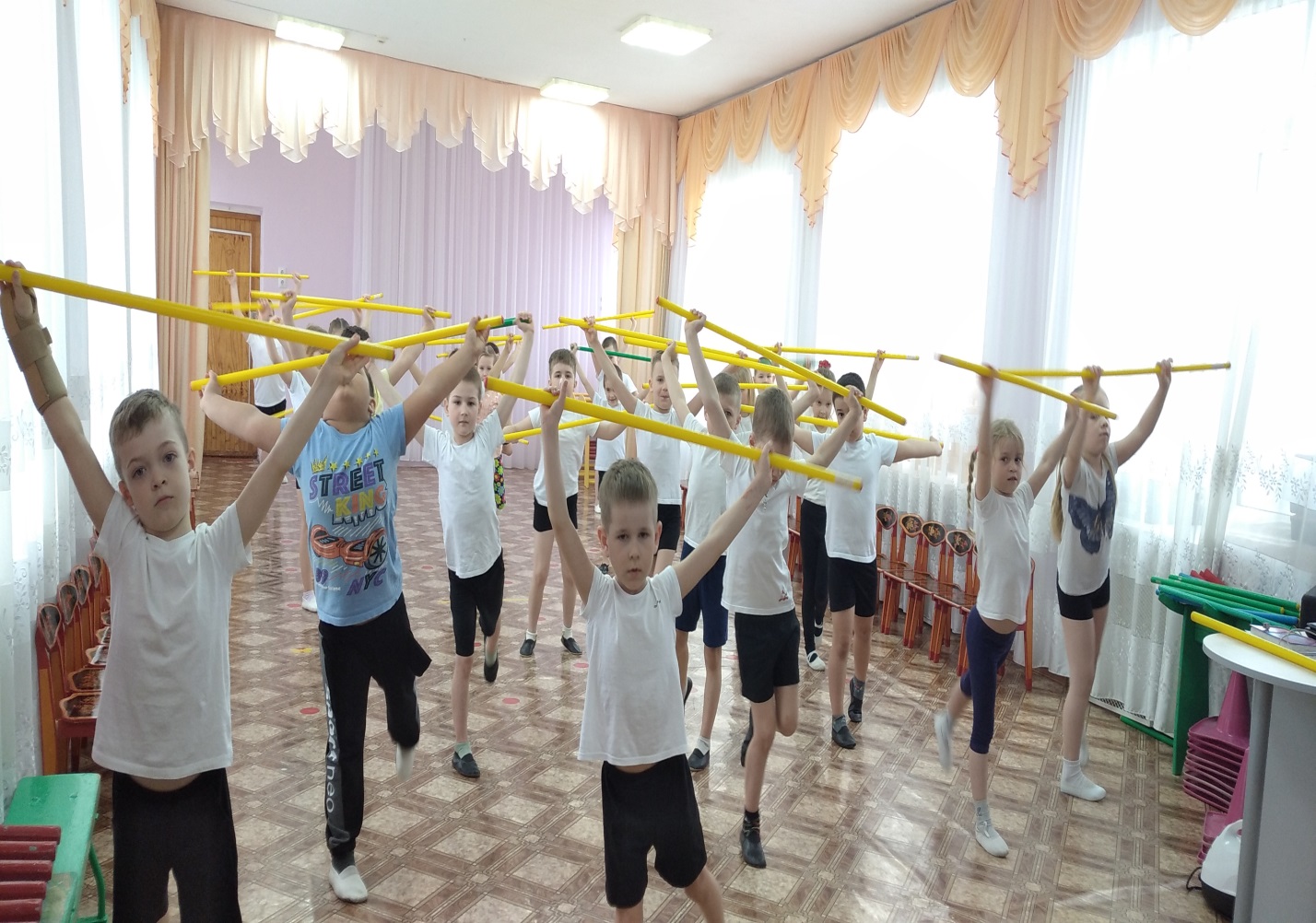 На своих занятиях «Здоровая спина» я использую универсальный предмет- гимнастическую палку. Упражнения с гимнастической палкой способствуют формированию и исправлению осанки. Гимнастическая палка способствует развитию подвижности в плечевых суставах, помогает удерживать спину прямой, фиксировать позвоночник, укрепить мышцы живота и поясницы, улучшить кровообращение, сделать тело более подтянутым в области талии, ягодиц и бёдер. Кроме этого, все упражнения с гимнастической палкой так или иначе работают на коррекцию осанки, что актуально для людей всех возрастов, ведь и дети, и взрослые всё чаще ведут сидячий образ жизни.
