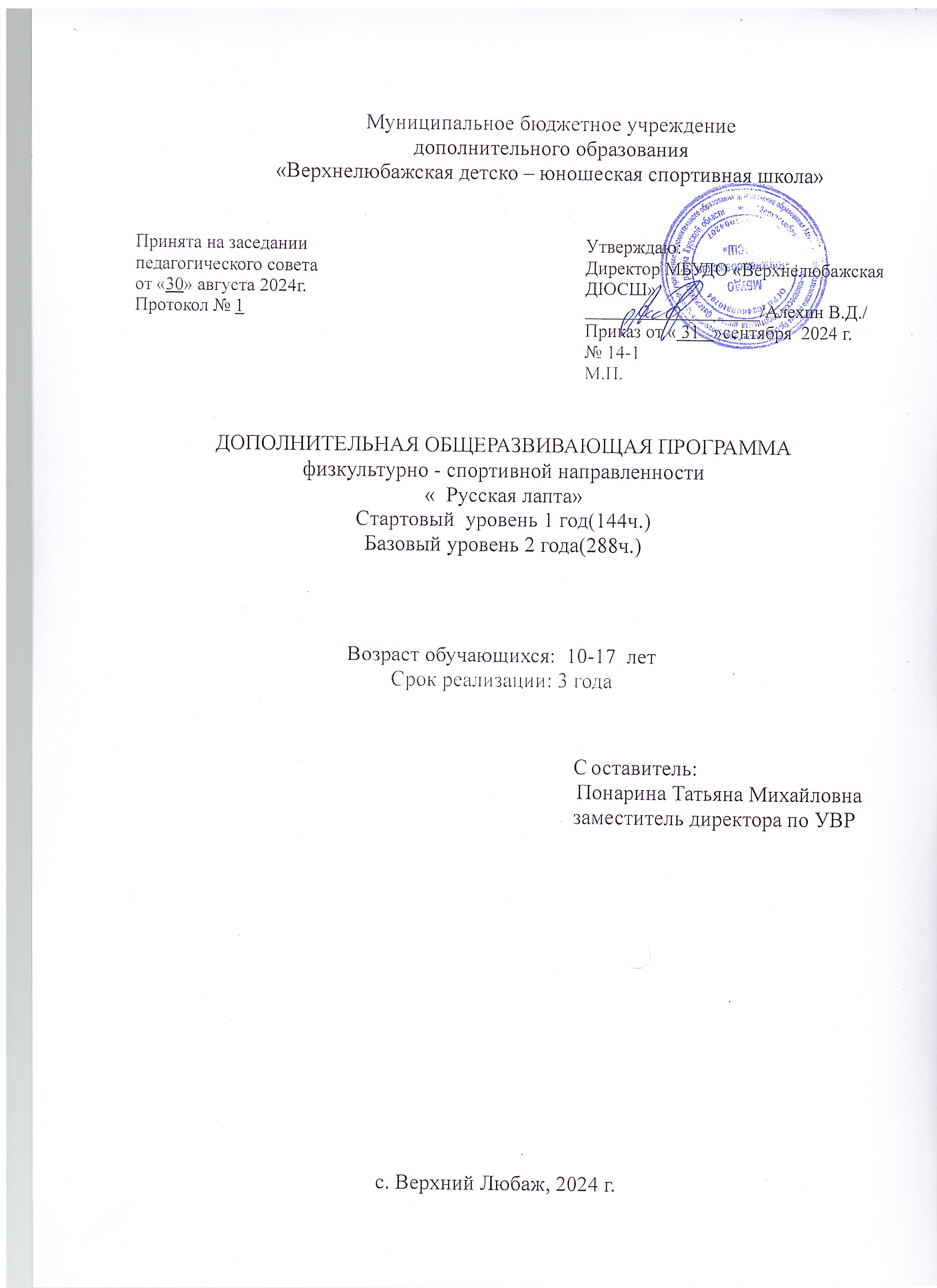 Уставамуниципальногобюджетногоучреждениядополнительногообразования«Верхнелюбажская детско-юношескаяспортивнаяшкола»,утверждённыйприказомОтделаобразованияАдминистрацииФатежскогорайона,Курской области,от 5 августа 2021г.№ 41 ;