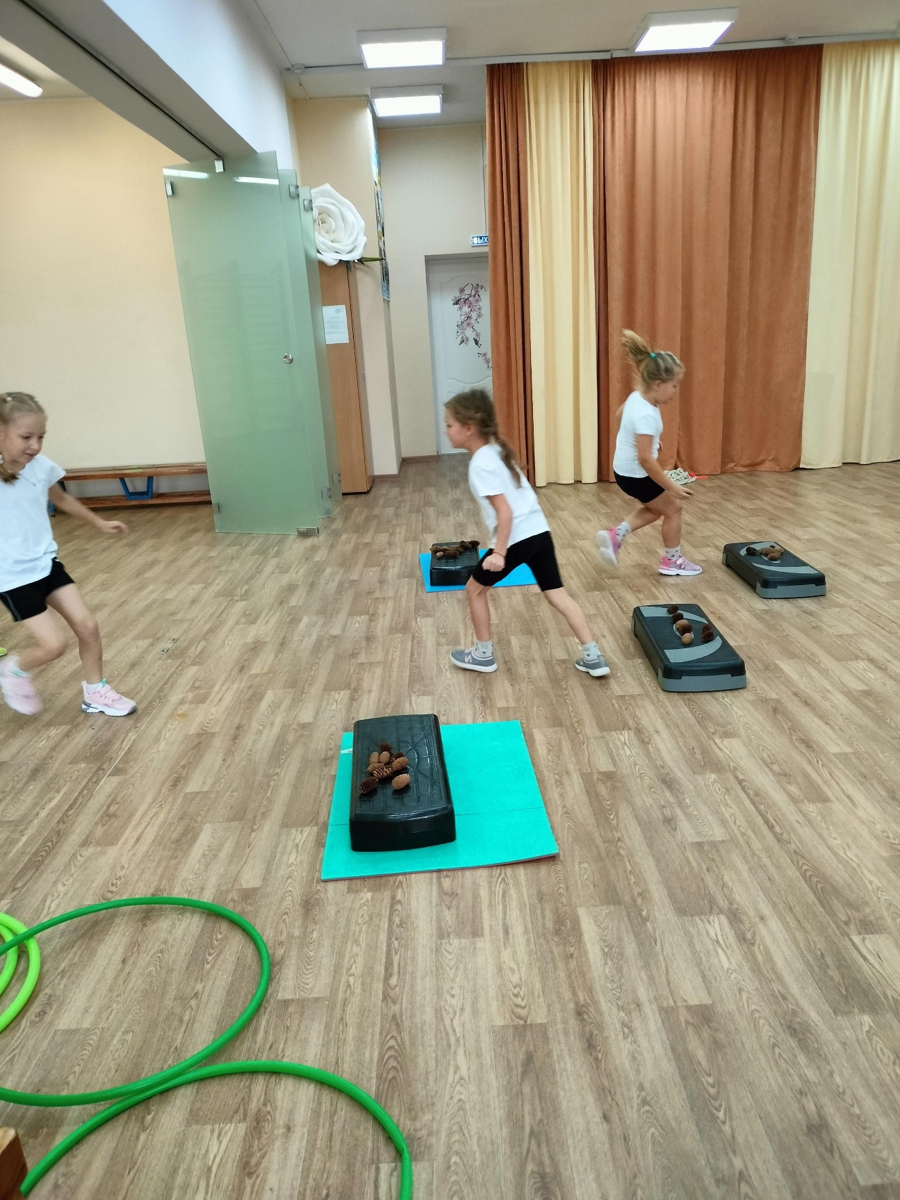 После того как, все дети оказались на другой стороне зала, упражнение повторяется еще раз под другую музыку.