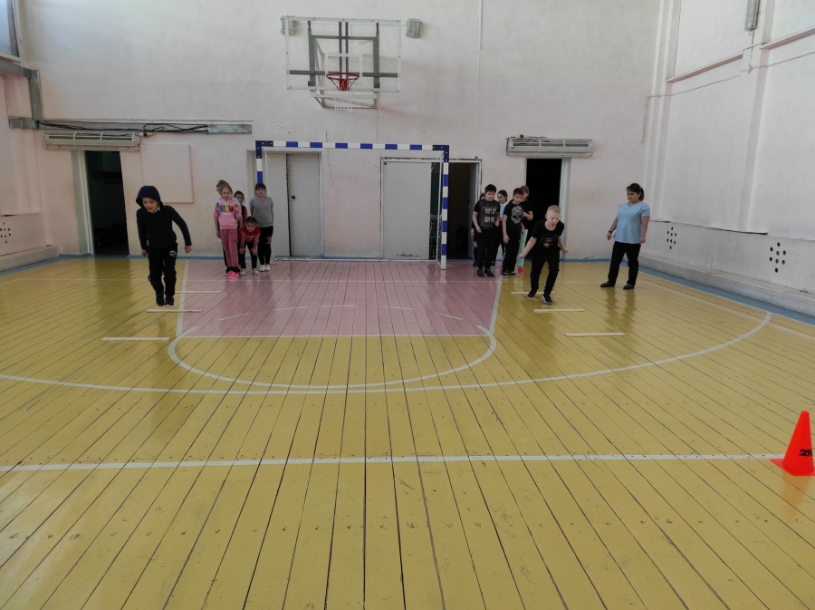 И. п. основная стойка ноги на ширине ступни, руки на поясе. Прыжки на двух ногах на месте на счёт 1-8, повторить 3-4 раза в чередовании с небольшой паузой (ходьба). Закончили упражнение.