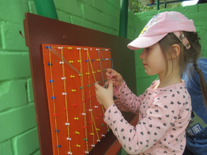 | Цель: Развивать у детей пространственное и ассоциативное мышление, внимание, память, мелкую моторику (растягивание, надевание резино- чек на гвоздики – полезная сенсорная «зарядка» для маленьких пальчиков!). Эта несложная игрушка используется детьми как математический планшет и |