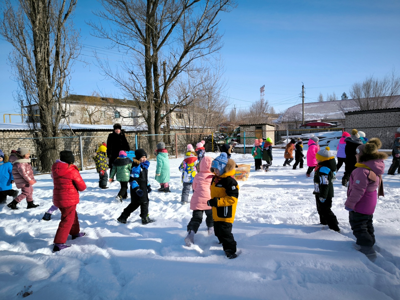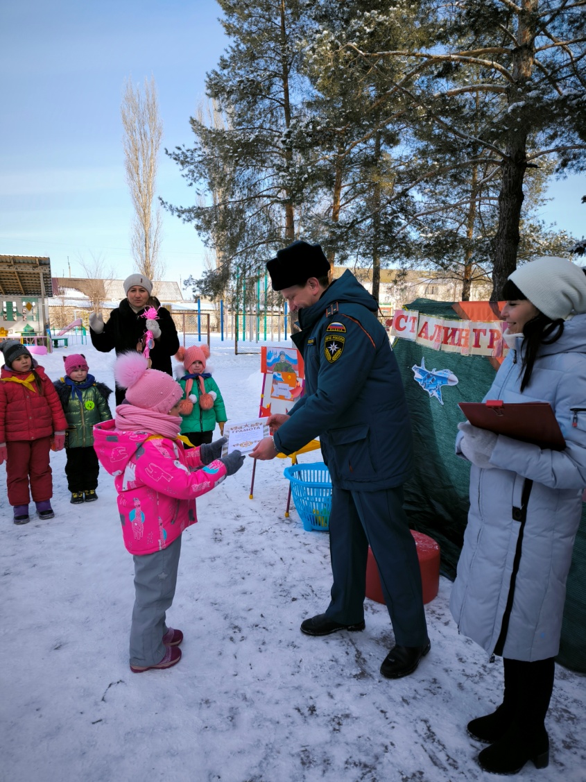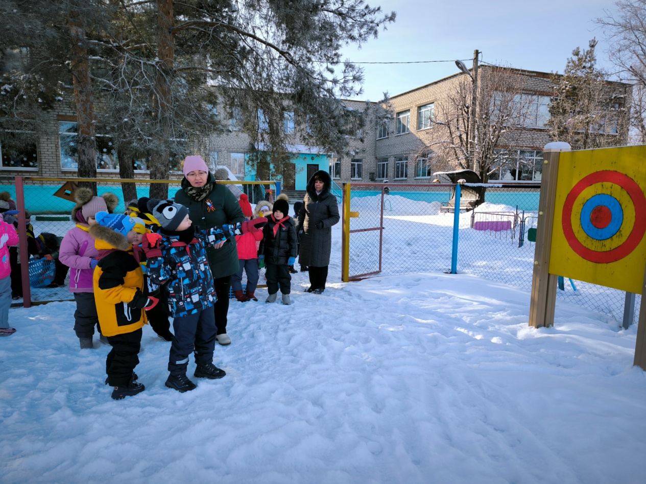 Найти «мины» – кегли, зарытые в снегу, у каждой группы своя площадка – по 10 кеглей для каждой команды.Команда, быстрее справившаяся с заданием получает звезду.