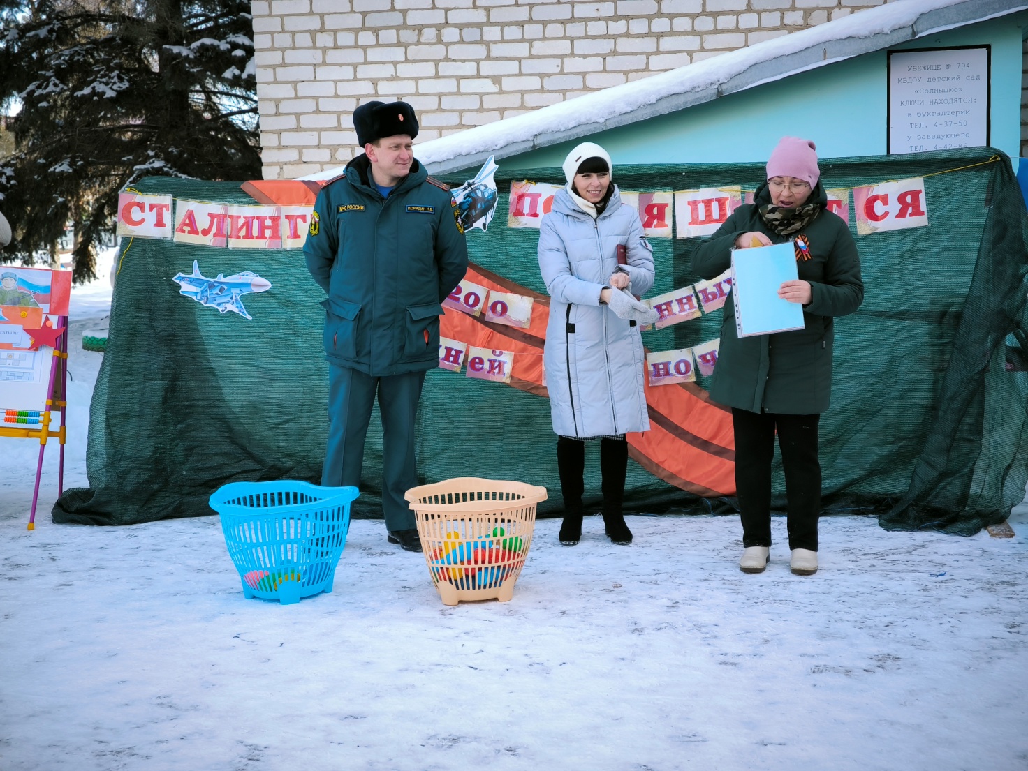 Атрибуты и оборудование:фотозона, посвященная 81-ой годовщине Сталиградской битвы, конверты скартами маршрутов, мешочки для метания, кегли, канат, плоскостные звездочки, флажки, магнитофон, аудиозаписи военных песен, марша, для награждения почетные грамоты.
