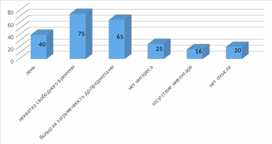 Некоторые различия появляются в отношении к занятиям физической культурой и спортом. Значительная часть юношей посещают дополнительные занятия в тренажерном зале, бассейне, на турниках для поддержания своего социального статуса в коллективе за счет привлекательной внешности, игровые виды спорта предпочитают юноши, мотивированные побеждать. Однако наметилась такая тенденция, что в старших классах остаются парни, мотивированные на учебу.