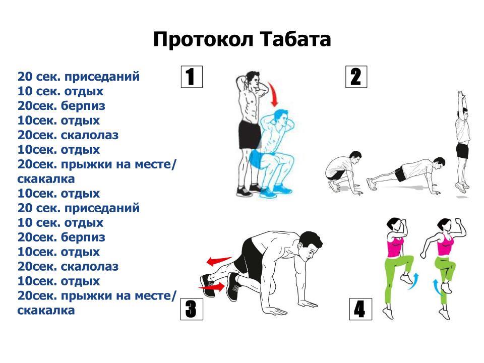 Система упражнений Табата – известная во всём мире интервальная тренировка высокой интенсивности. Тренировка Табата или, по-другому протокол Табата, была предложена доктором Изуми Табатой и командой исследователей Национального Института Фитнеса и Спорта в Токио. Они обнаружили, что подобная тренировка даёт гораздо лучшие результаты по сравнению с обычной аэробной нагрузкой.