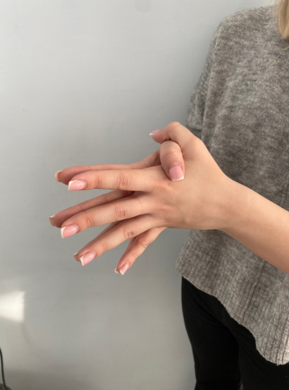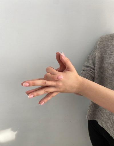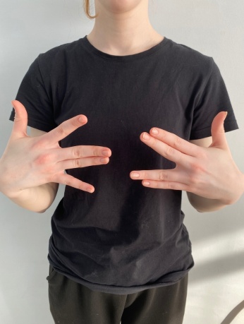 2. Упражнение «Ножницы» - поместить большой, безымянный пальцы и мизинец на ладонь. Указательный и средний пальцы протянуть прямо. Выводить их в стороны, чтобы создать положение ножниц и постепенно увеличивать темп, не сгибая пальцы.