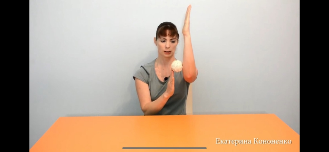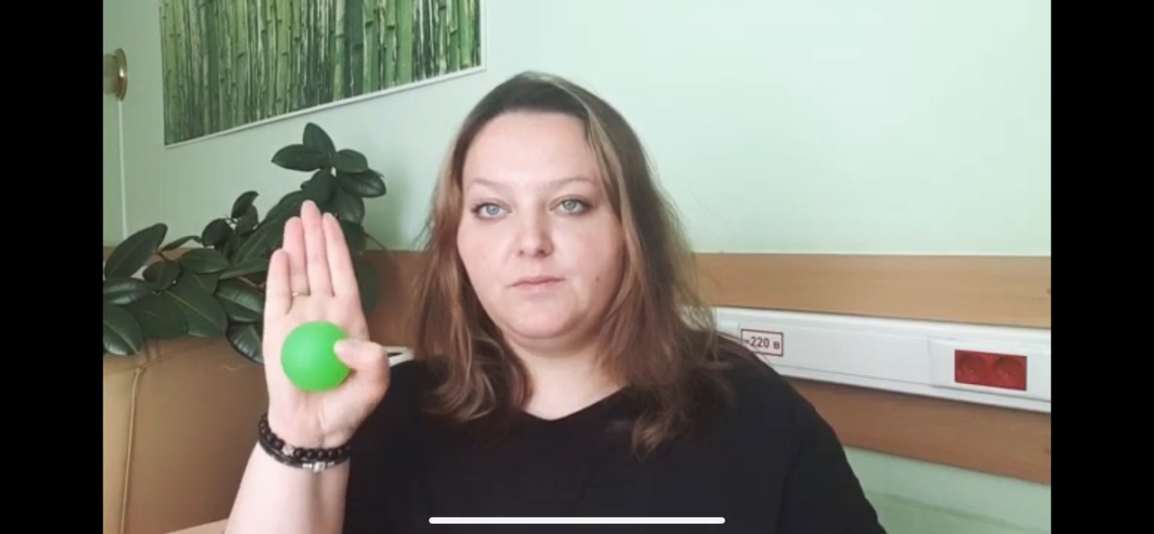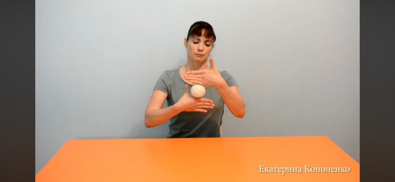 | ОМУ Мяч катаем по внутренней стороне предплечья и ладоней При вращении мяча должен быть задействован каждый палец Пальцы держать собранными, ладони не заваливать При вращении мяча ладони параллельно друг другу, кисти не сгибать Выполнить 3-6 надавливаний каждым пальцем, особое внимание уделить безымянному пальцу и мизинцу. Упражнение выполнять двумя руками При выполнении упражнения работает только большой палец, оставшиеся не сгибать, держать соединенными. |