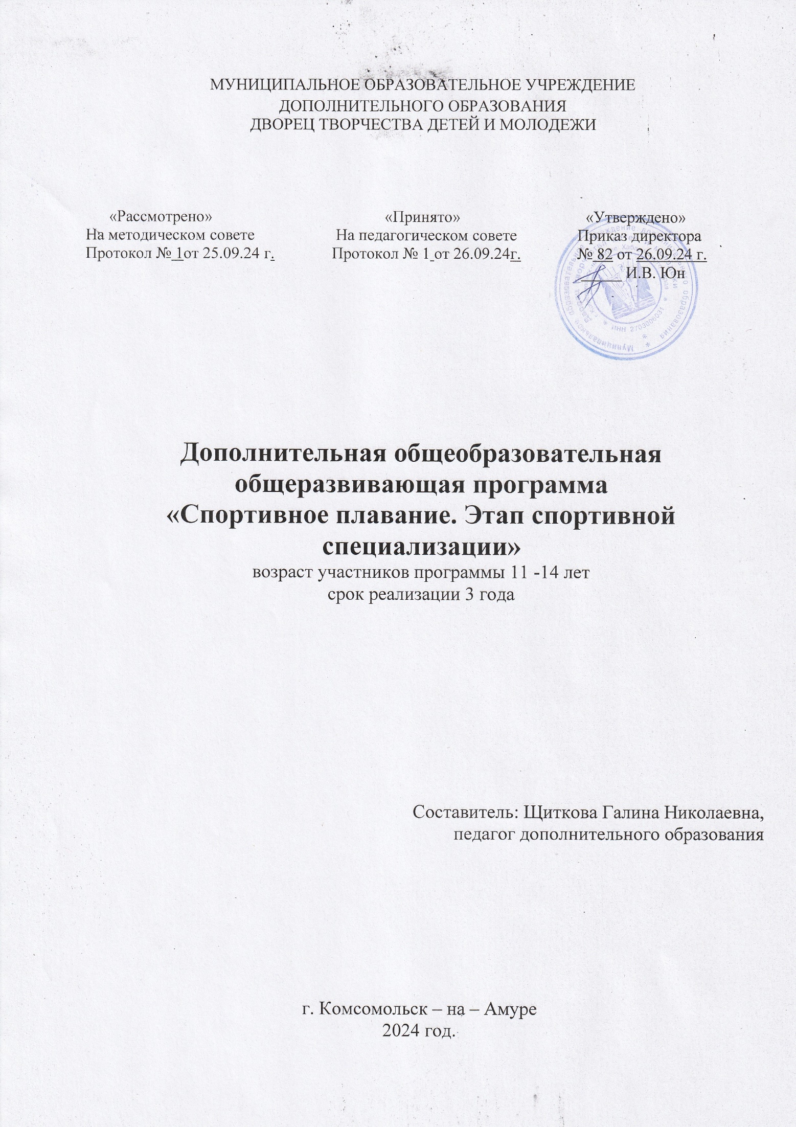 Дополнительная общеобразовательная общеразвивающая программа "Спортивное плавание. Этап спортивной специализации"
