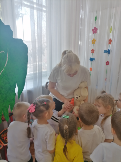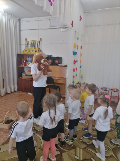 Воспитатель: Ребята, давайте попрощаемся с медведем, нам пора в детский сад возвращаться.
