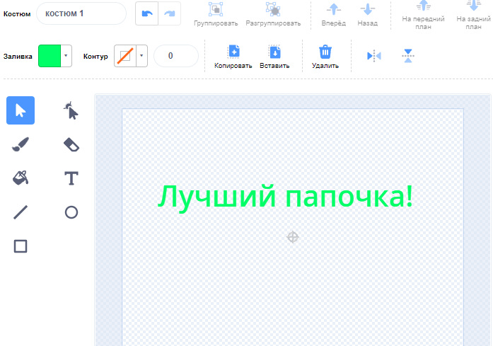 1. Создайте второй спрайт аналогичным образом, нарисовав надпись, например: «Лучший папочка!»