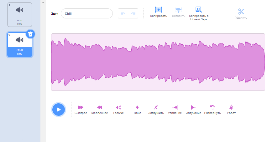 1. Во вкладке Звуки добавьте мелодию (можно выбрать готовую композицию или записать свою).