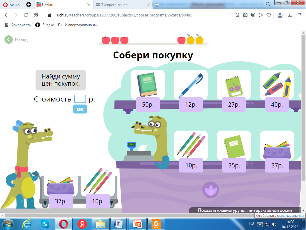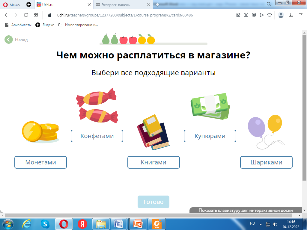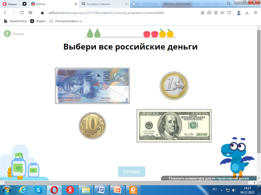 Оборудование: интерактивная доска, презентация, подключение к интернету к образовательной платформе Учи.ру, монеты, листы с тестами, листы самооценивания.