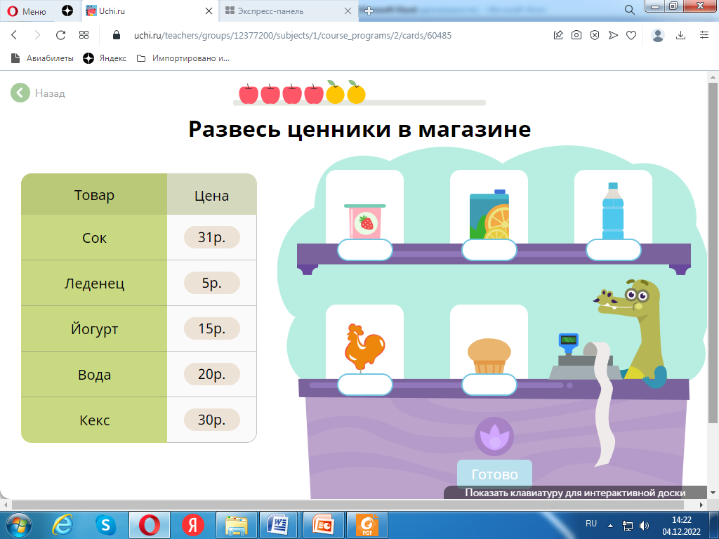 Формирование функциональной математической и информационной грамотности: соотнесение ценника с товаром;