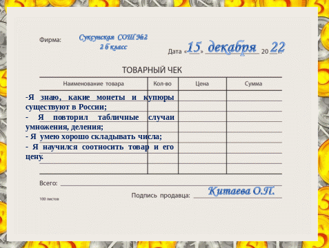 (Возвращение к 1 слайду. Сообщение учителем информации, что это монеты. Курс финансовой грамотности начнётся в IV четверти.)