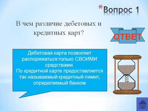 В ходе игры учащиеся пополняют свои знания: о банковских картах и их видах.