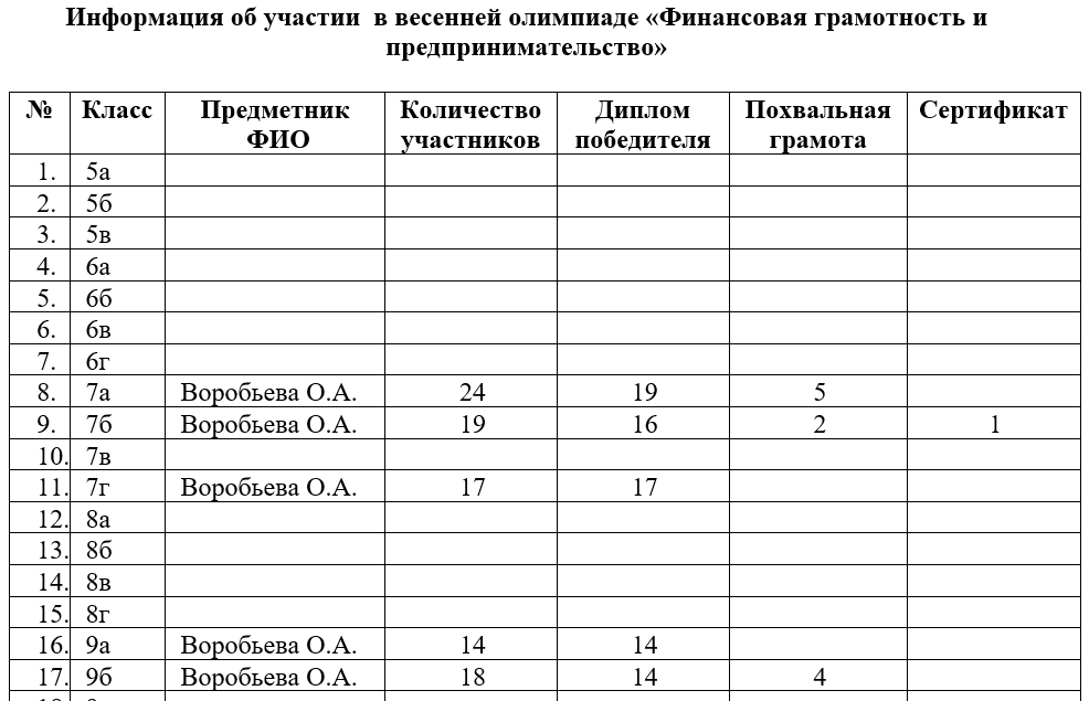Также в рамках Проекта Минфина России «Содействие повышению финансовой грамотности населения и развития финансового образования в Российской Федерации» учащиеся выполняли задания и участвовали в Международной Олимпиаде «ЯКласс» по финансовой грамотности (Приложение 7).