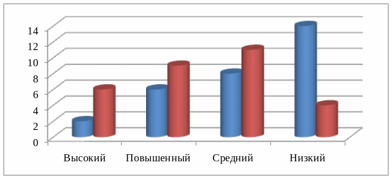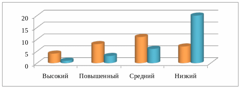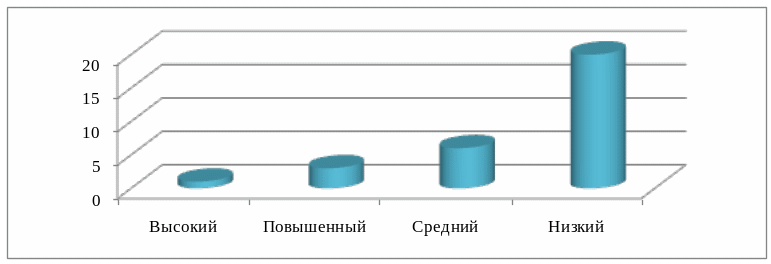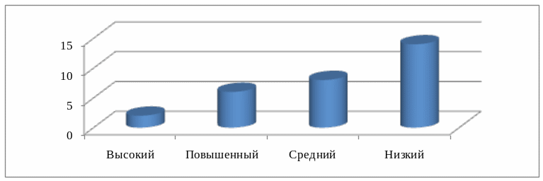 Из диаграмм мы видим, что в основном уровень знания учениками по результатам проверочной работы на констатирующем этапе находится на низком уровне. Данные результаты говорят о необходимости проведения с учащимися работы, которая бы позволила улучшить знания школьников.