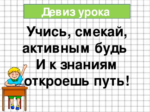 Мотивационно-целевой этап | Приветствие. Проверка готовности к уроку. -Чего вы ждете от этого урока? - Как бы вы хотели, чтобы прошел урок? - Пусть наш урок пройдет под девизом